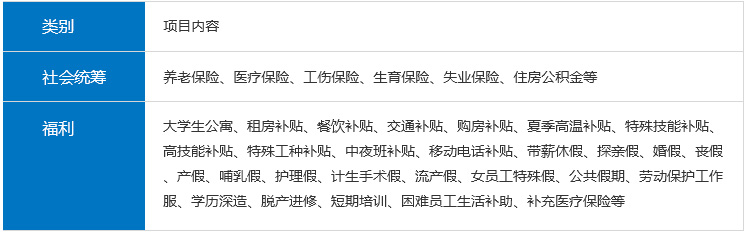 公司在按國家規(guī)定為員工繳納社會保險(養(yǎng)老、醫(yī)療、生育、工傷、失業(yè))和住房公積金的同時,為員工提供了多種多樣的福利項(xiàng)目。